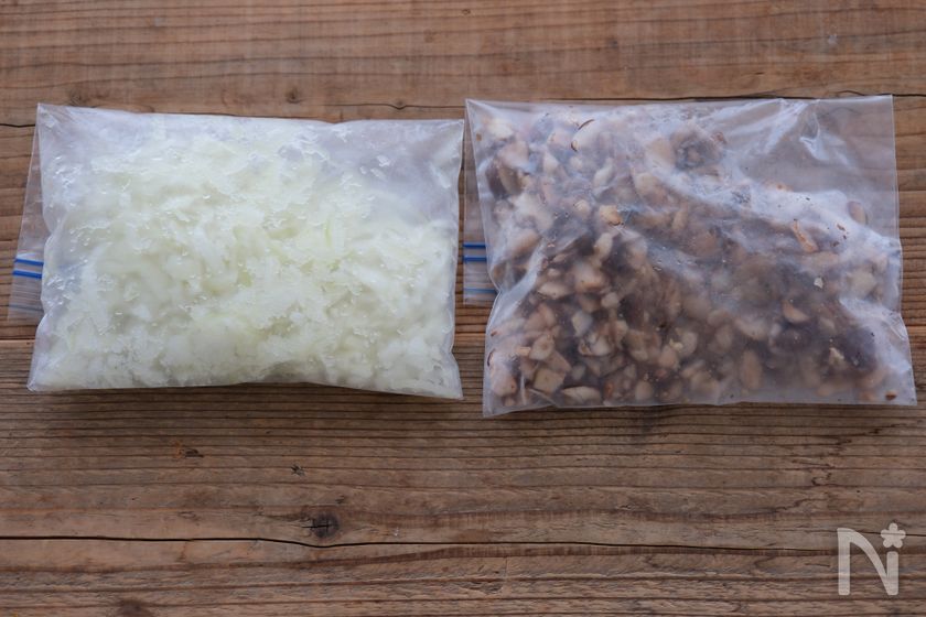 それぞれ冷凍用保存袋に入れて冷凍しておく。冷凍する際に「できちゃうV冷凍+」に設定しておく。