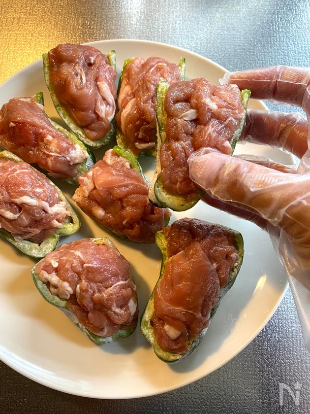 *ピーマンに豚こまを詰める際、大きめの肉は手でちぎりながら等分に詰めてください。