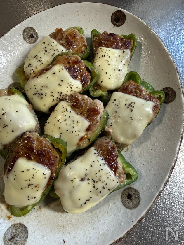ピーマンの肉詰めチーズ【豚こまで簡単】