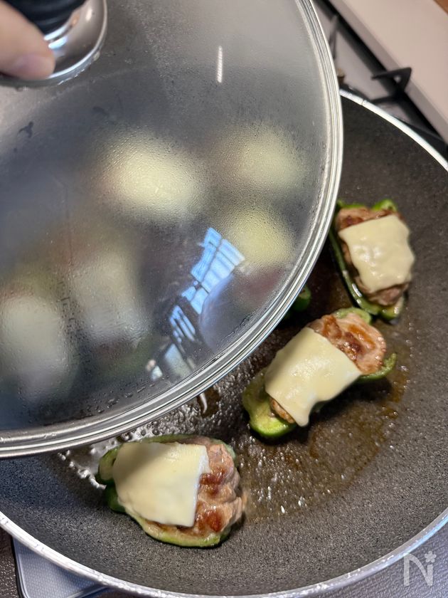 (7) 再び蓋をして弱火のまま、チーズが溶けるまで蒸し焼きにする。