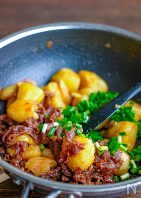 (4) 火が通ってきたら②も加えて炒め、最後に万能ねぎを加えてサッと炒め合わせて出来上がり。