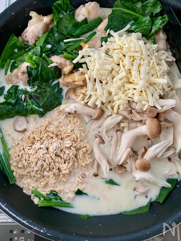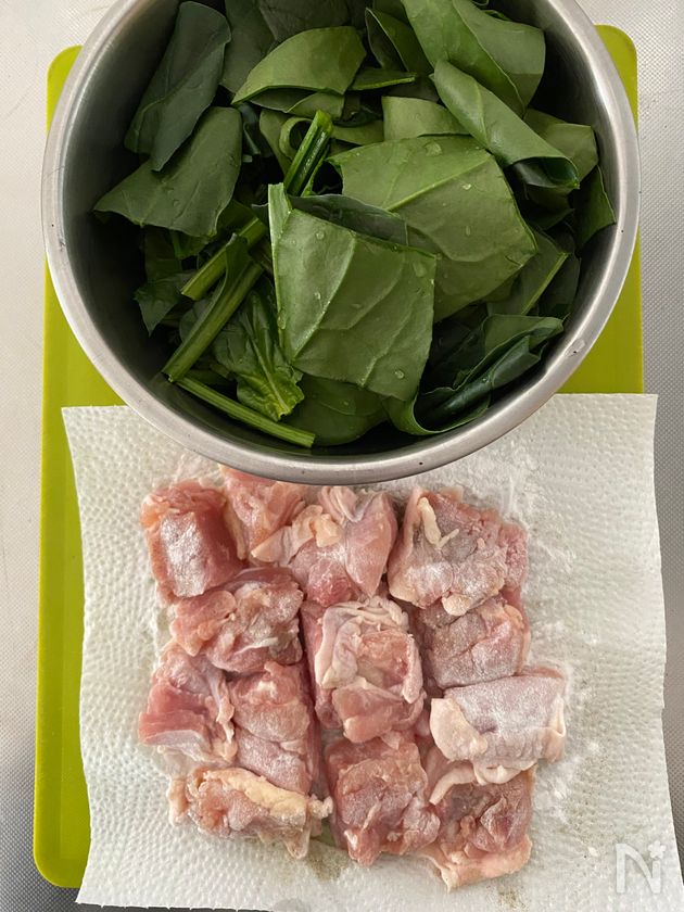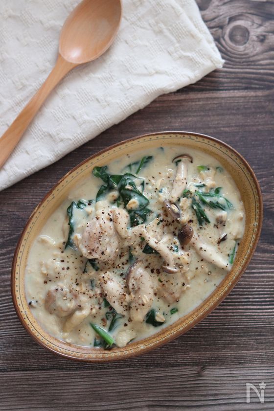 【鶏肉とほうれん草のヘルシークリーム煮】主食の材料はお好みで