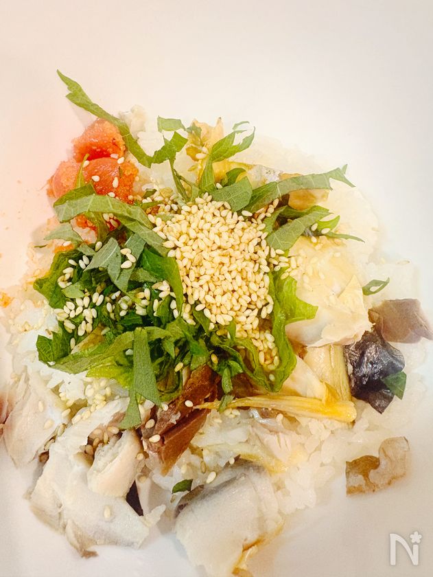 さばと明太子はざっくりほぐすことにより素材の美味しさも味わえます。