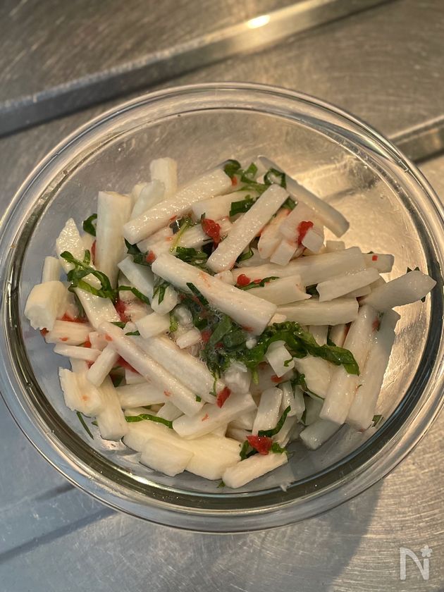 切って和えるだけでお箸が止まらない!「長芋の梅しそ和え」