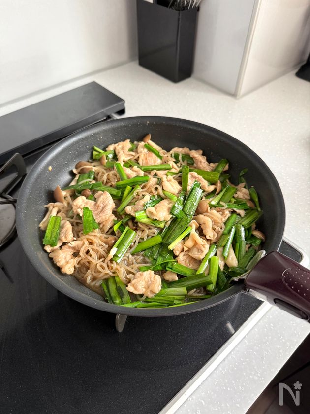 ニラを加えてさっと炒める。