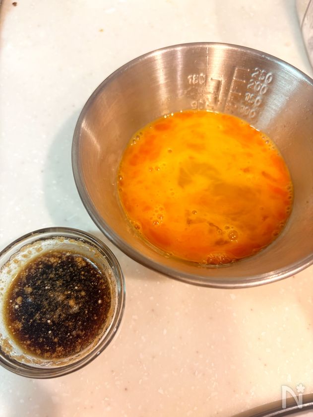 最後にサラダ油(小さじ1 分量外)を化粧油として回し入れ火を止める。