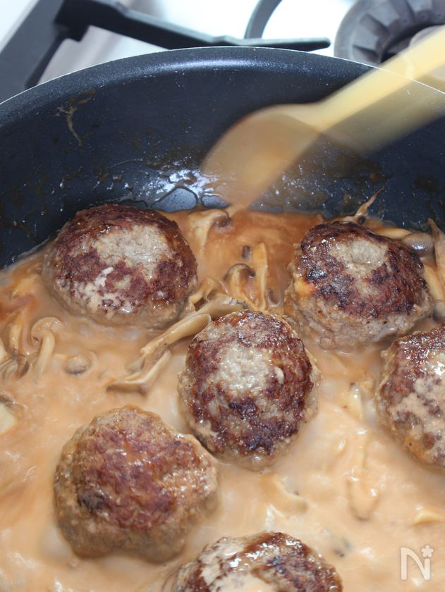森のきのこのクリーミーハンバーグ