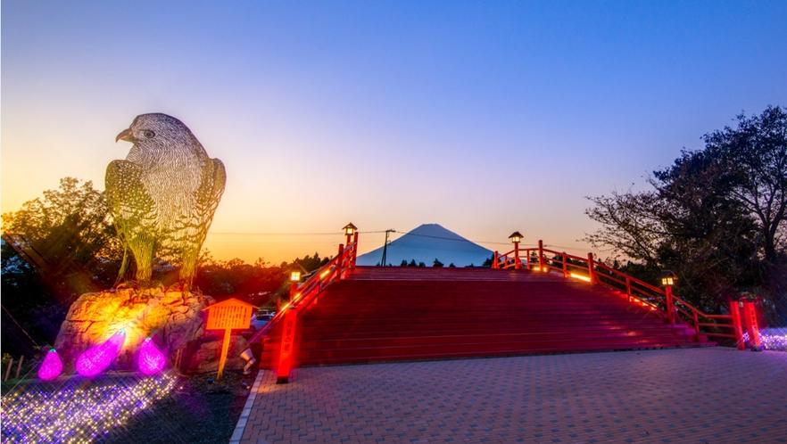 敷地内の露天風呂や一部の客室などから富士山を望むことができます。年間を通じて様々なイベントを開催しており、冬期に行う大規模イルミネーション「時之栖イルミネーション」は、光り輝く幻想的な世界と、背景にそびえる富士山を一度に楽しめる点も人気を集めています。