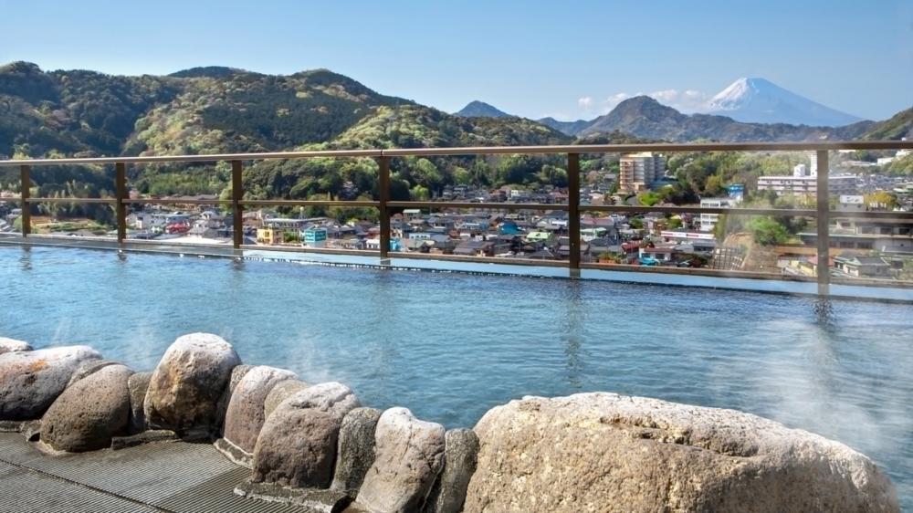 ほぼすべての部屋から富士山を眺めることができます。高台にあるニュー八景園の天空露天風呂から見渡す景色は格別です。