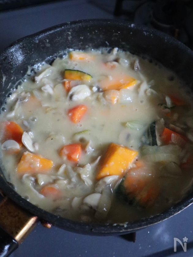 ※ここで味見をして足りなければコンソメや塩、牛乳などを入れて調整する。