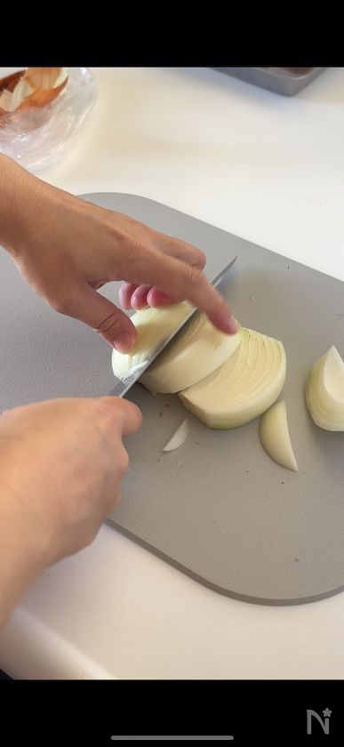 (1) 玉ねぎはくし切りにする。椎茸は軸を落として半分に切る。厚揚げは6等分にする。