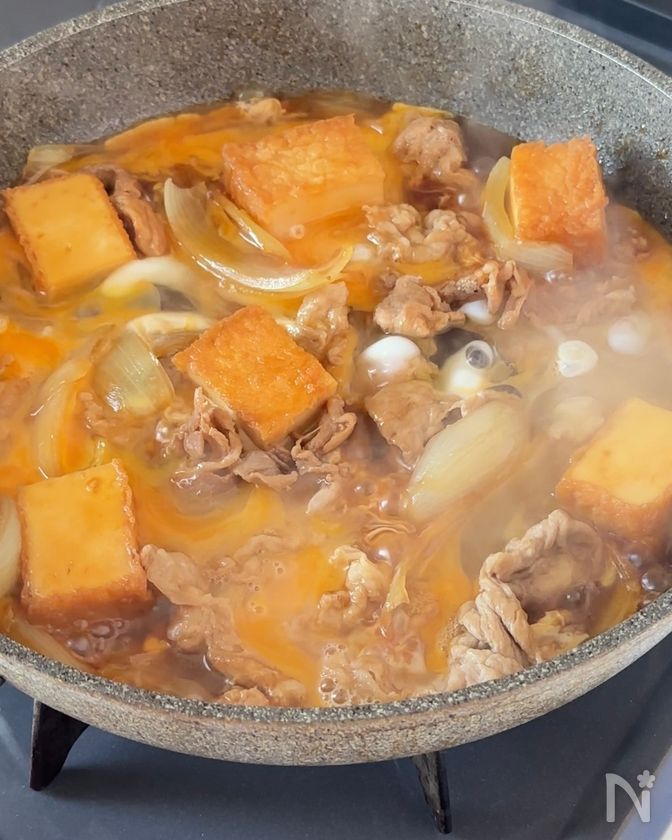 【豚こまで節約♡絶品!すき焼き風の卵とじ】おつまみにも
