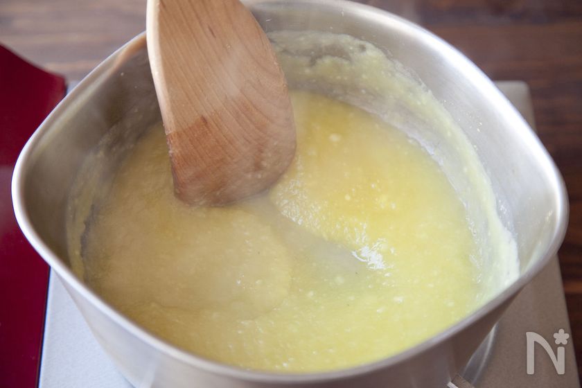 (※冷めるとやや硬くなるので、少し緩い状態で火を止めます。)