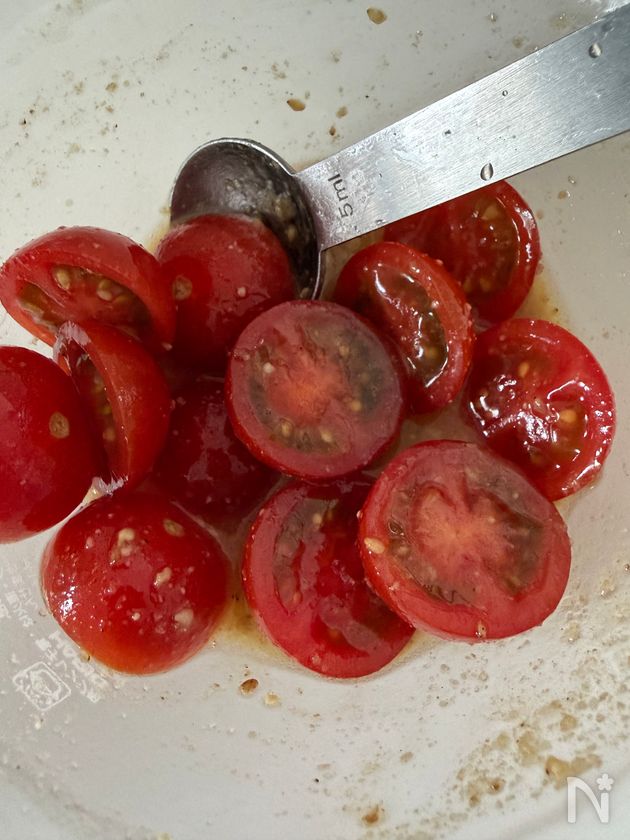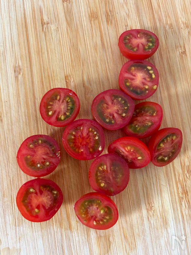 ■ ミニトマトは半分に切ることで、味がなじみやすくなる