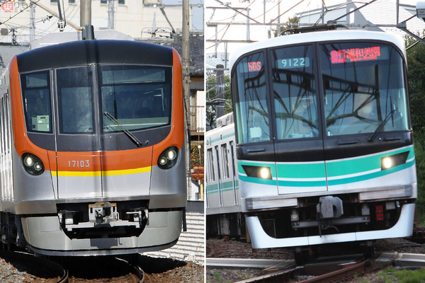 東京メトロ有楽町線の17000系電車と南北線の9000系電車(伊藤真悟、大藤碩哉撮影)。