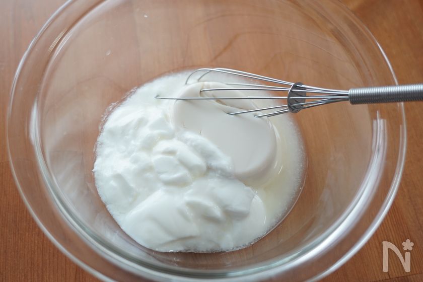 (1) ボウルに【A】を入れ、なめらかになるまで泡立て器などで混ぜる。