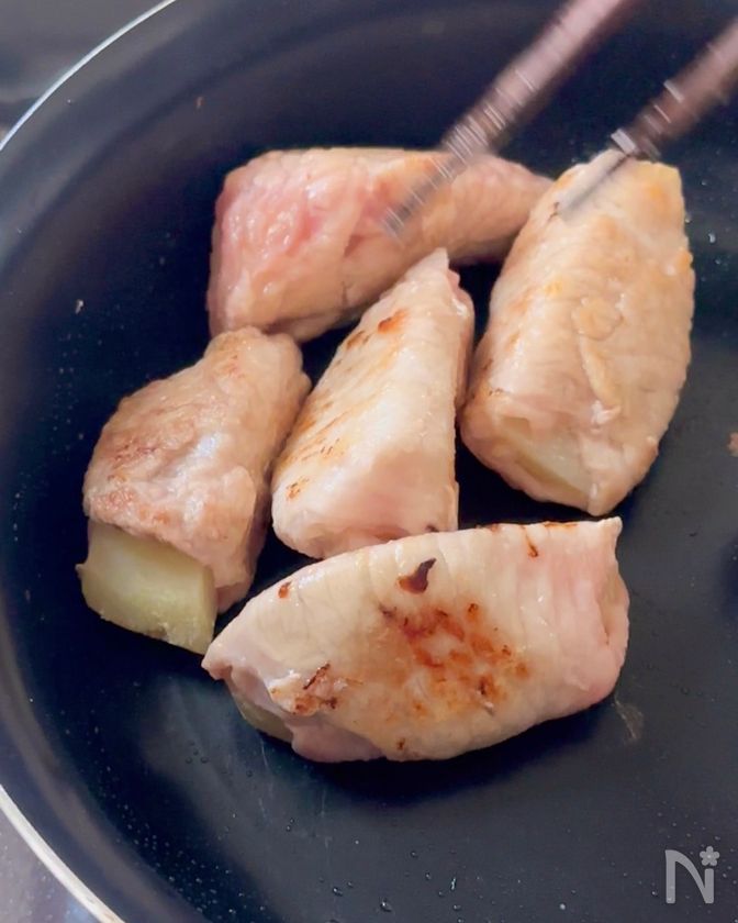 巻いて焼くだけ◎ 材料2つで大満足✨絶品【肉巻きポテト】