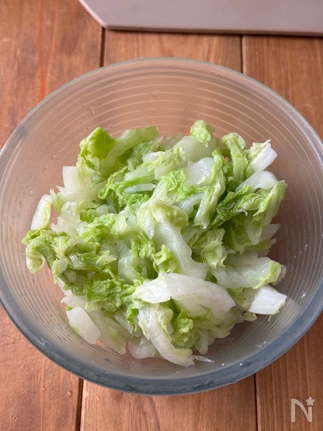 (下準備) 白菜は細切りにし耐熱容器に入れる。