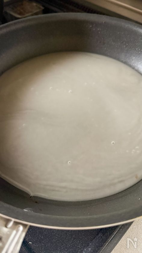 (5) ひっくり返して水(分量外)大さじ1を加えて蓋をし、弱火で4〜5分蒸し焼きにする。