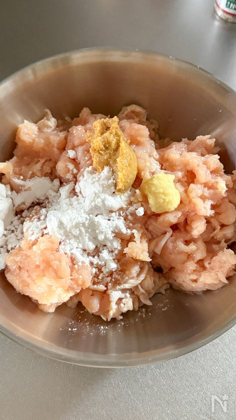 (2) 鶏ひき肉に【A】を加えてよく混ぜる。