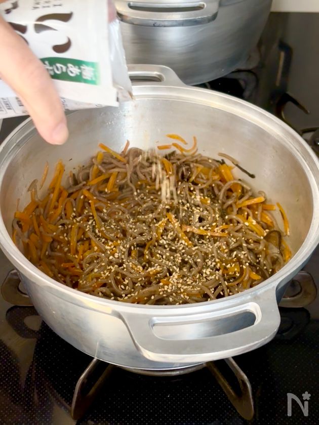 (2) 最後に白ごまを振る(水分を吸わせるイメージ)