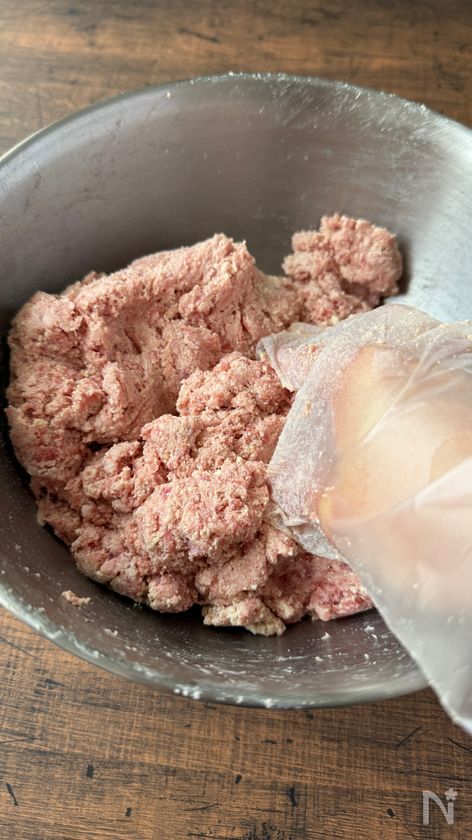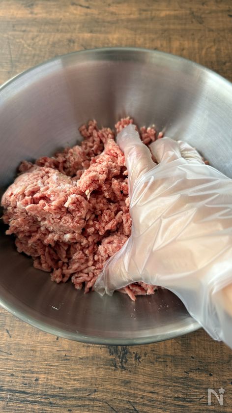 ・ひき肉が痛みやすいので玉ねぎは冷めてから加えてください。
