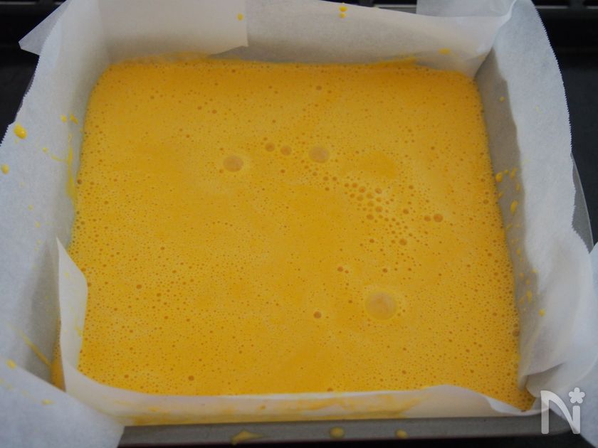 (3) 型に流し入れて、170度に予熱したオーブンで40分焼く。