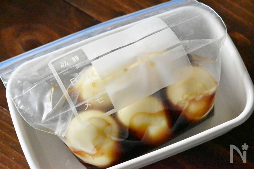・ゆで卵は、たれに漬ける前にキッチンペーパーで水気を拭き取って下さいね。