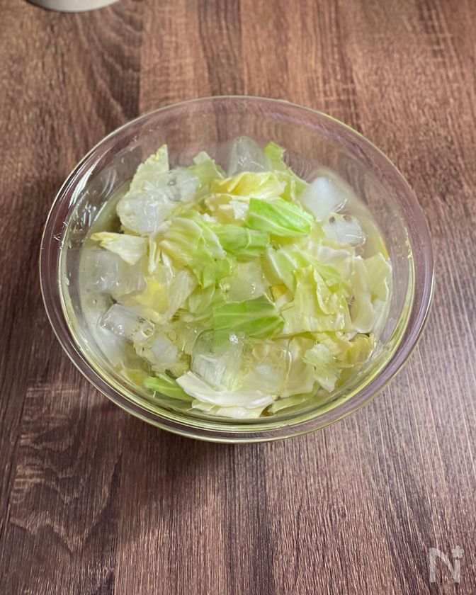 キャベツは冷水で一気に冷やすことで、色鮮やかに仕上がり、食感もよくなります。