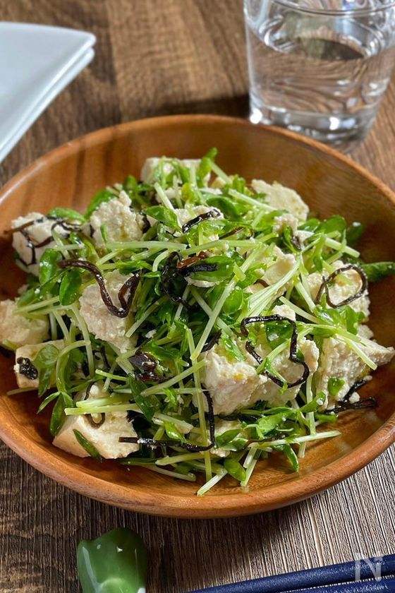 (2) ①を冷水または氷水に入れて一気に冷やし、よく水気を絞る。