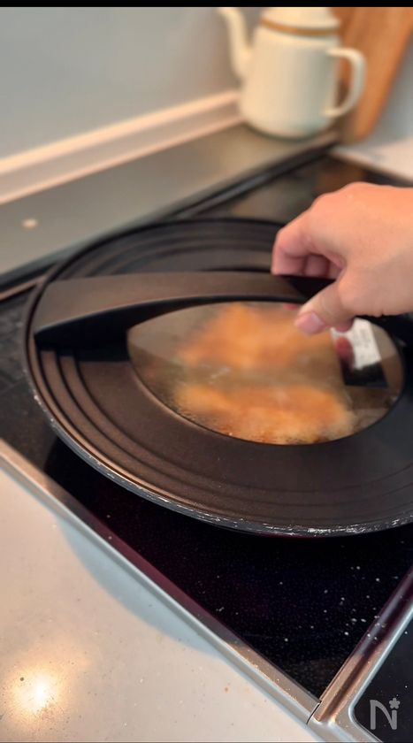 (5) 蓋をして、中まで火を通す。