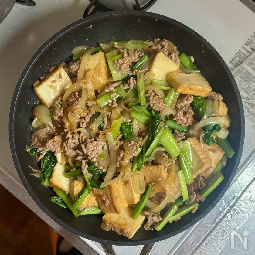 【厚揚げと小松菜のみそそぼろ炒め】忙しい毎日に♪