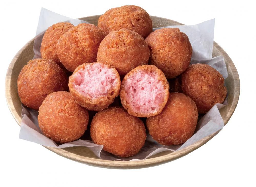 ひとくちサイズの小さなドーナツが複数入った商品で、軽い食感とほんのりとしたいちご風味が特徴です。おやつやコーヒータイムにもおすすめ。