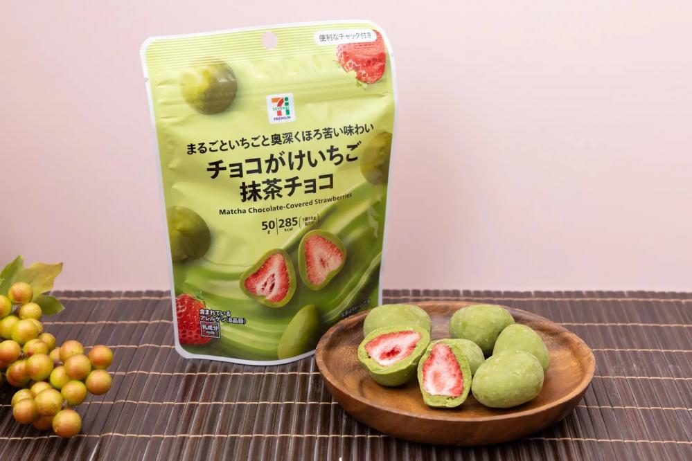 フリーズドライいちごに抹茶チョコレートをコーティングした商品。抹茶のほろ苦さといちごの酸味が調和した、少し大人向けのテイストです。