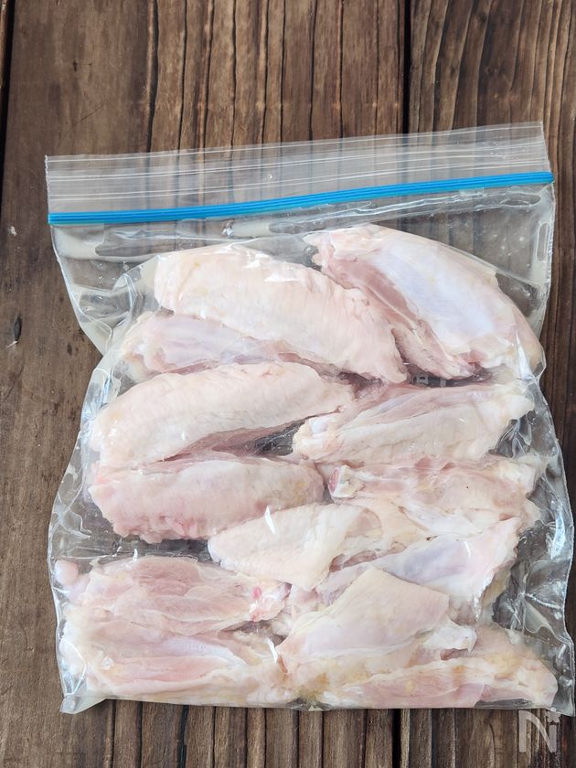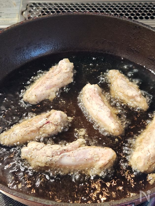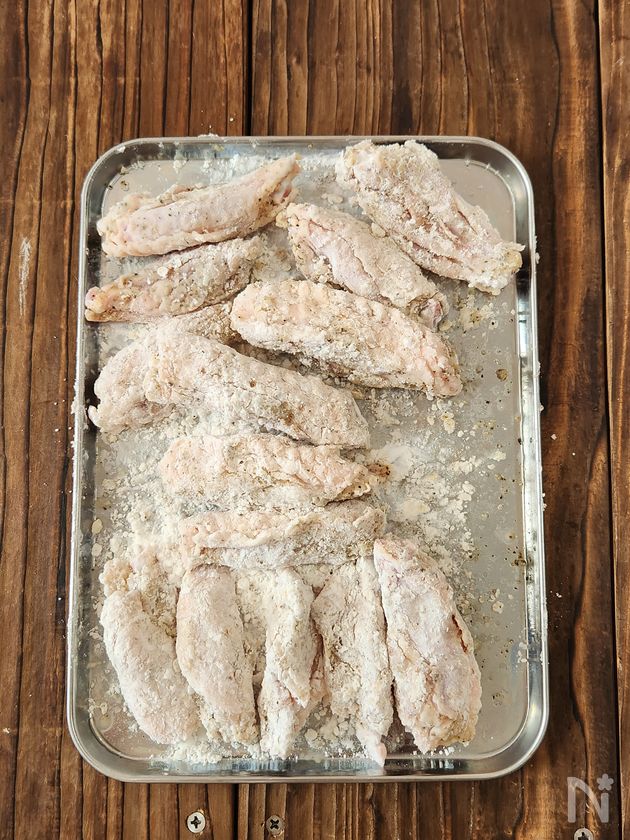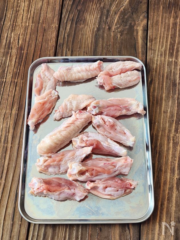 ・手羽中を取り出して、ペーパータオルで軽く押さえて、水分をとる。