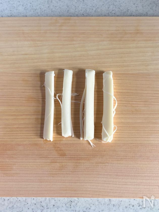 (1) さけるチーズは4本に裂く。