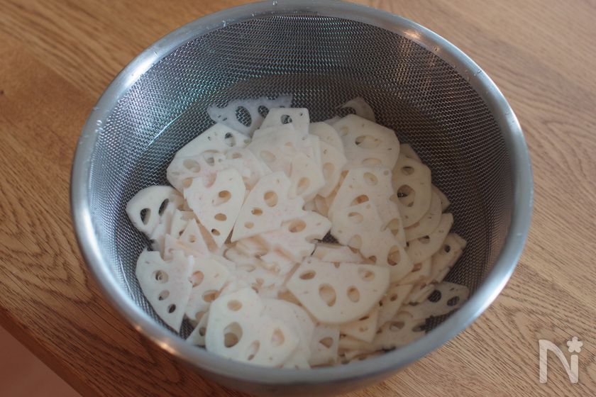 (1) れんこんは切ったら水にさらしておく。