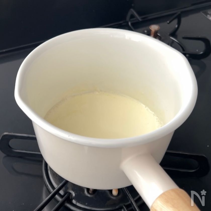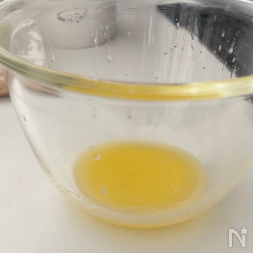 (2) 耐熱ボウルにバターを入れて600wで30秒温める。