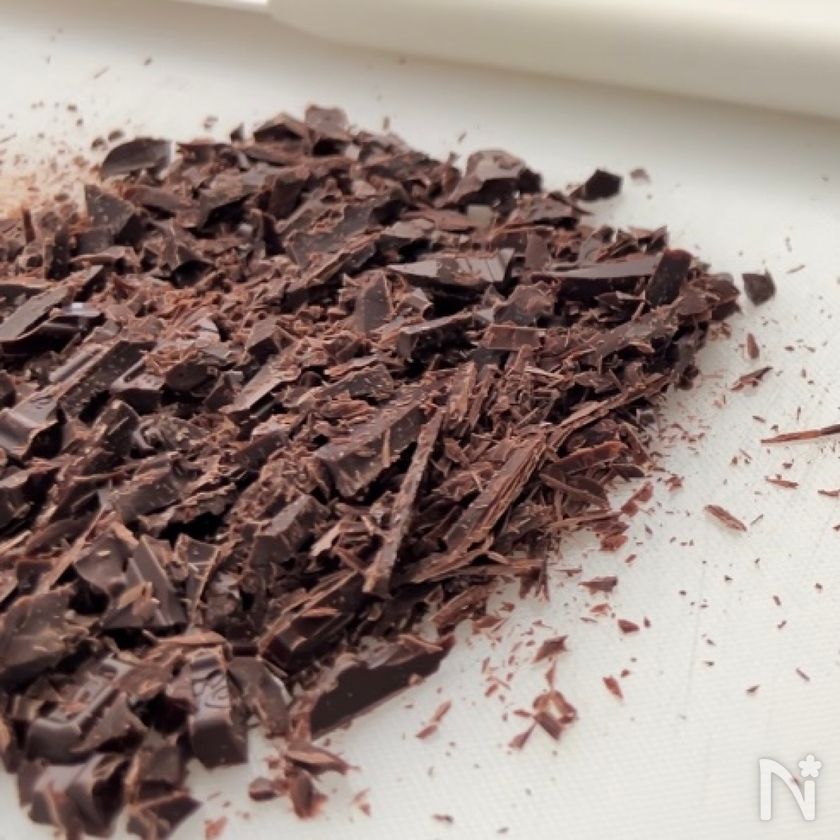 (5) ブラックチョコレートを細かく刻み、ボウルに入れる。