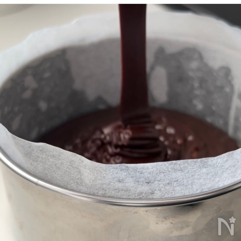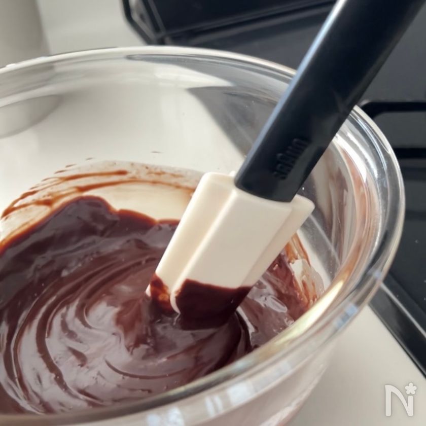 (7) 5に6を入れてチョコが溶けるまで混ぜる。