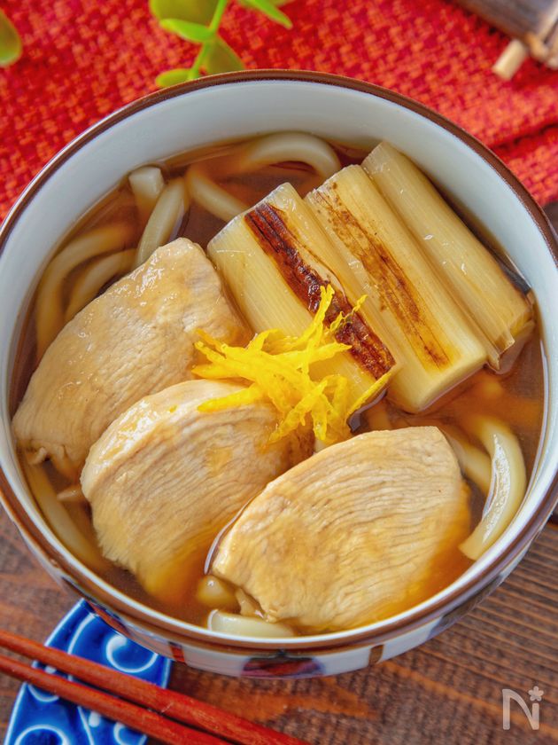 ワンパン簡単【鶏ねぎうどん】やわらか鶏むね肉とお出汁が激うま
