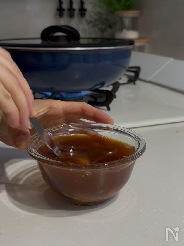 【A】は片栗粉が沈澱してしまうので、入れる前にもよく混ぜてください。