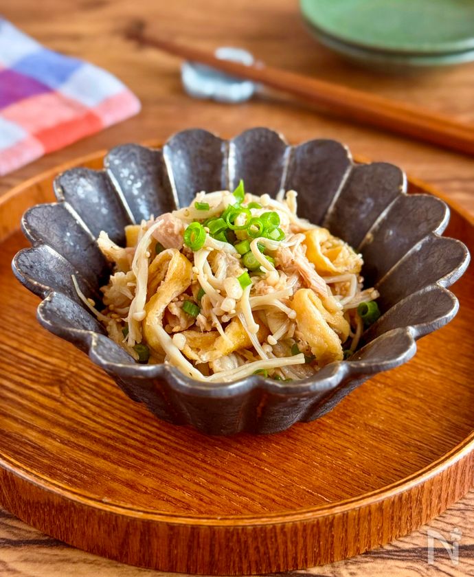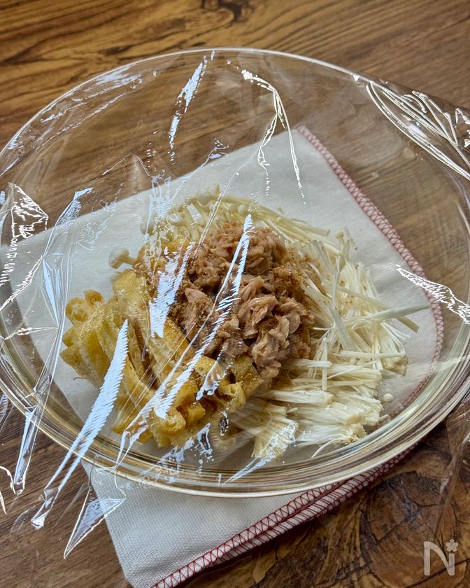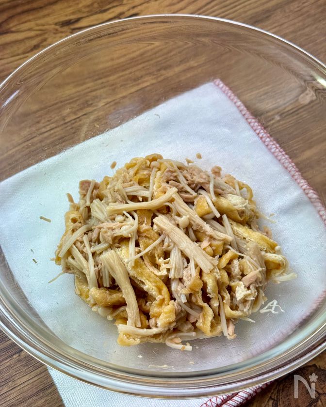 旨味しみしみ♪レンジで簡単【えのきと油揚げのツナぽん蒸し】