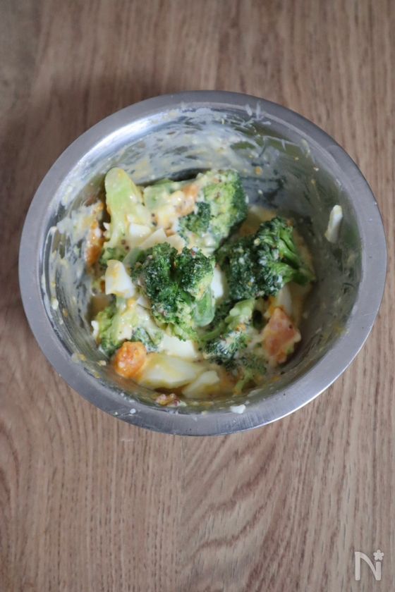 (1) ボウルにブロッコリー、ゆで卵、【A】を入れ、ゆで卵を崩しながら優しく和える。