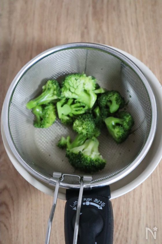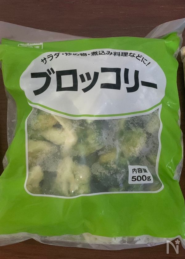 (2) 業務スーパーの冷凍ブロッコリーを使用しました。使いやすい大きさにカットされたブロッコリーを軽く湯通しし、急速冷凍しているため、洗ったり切ったりする手間が一切不要。冷凍庫に常備しておけば、彩りをプラスしたい時や、時間がない日の副菜作りに重宝します。