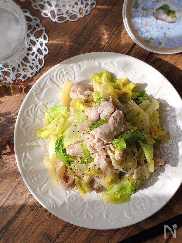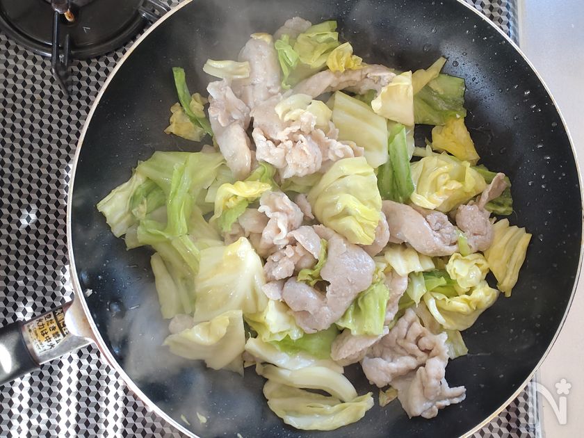 材料2つ☆豚こまキャベツの簡単旨塩炒め。