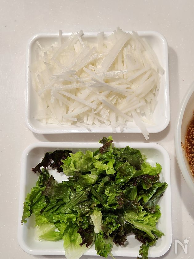 (下準備) ・大根は皮をむいて千切り。
