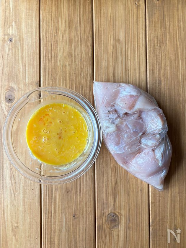 (1) 鶏むね肉は一口大に切り【A】を揉みこむ。