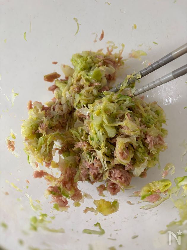 ■ キャベツは加熱後にしっかり水気を絞ることで、味がぼやけずしっかり決まる