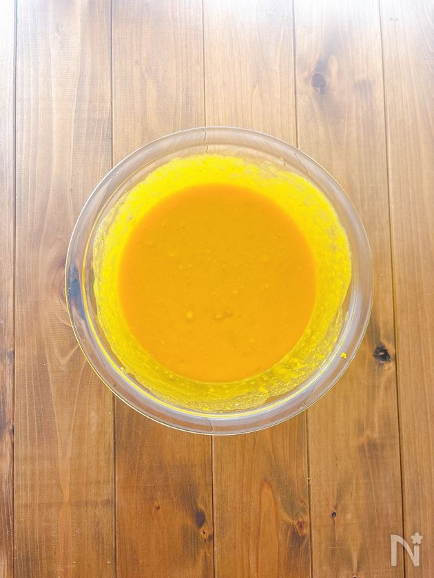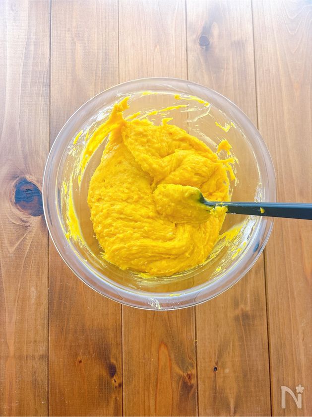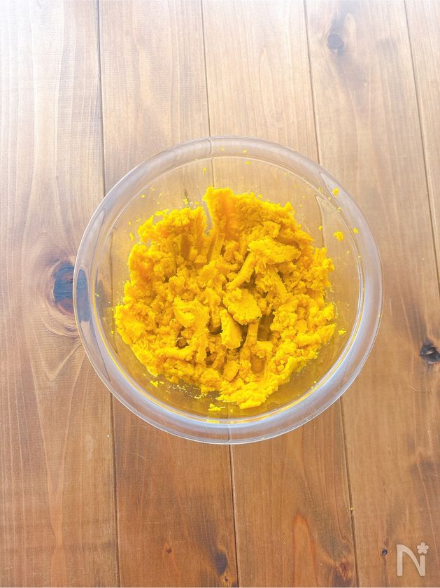 (1) かぼちゃは種とワタを除きラップで包んで600wで5分ほど加熱し、なめらかになるように潰す。